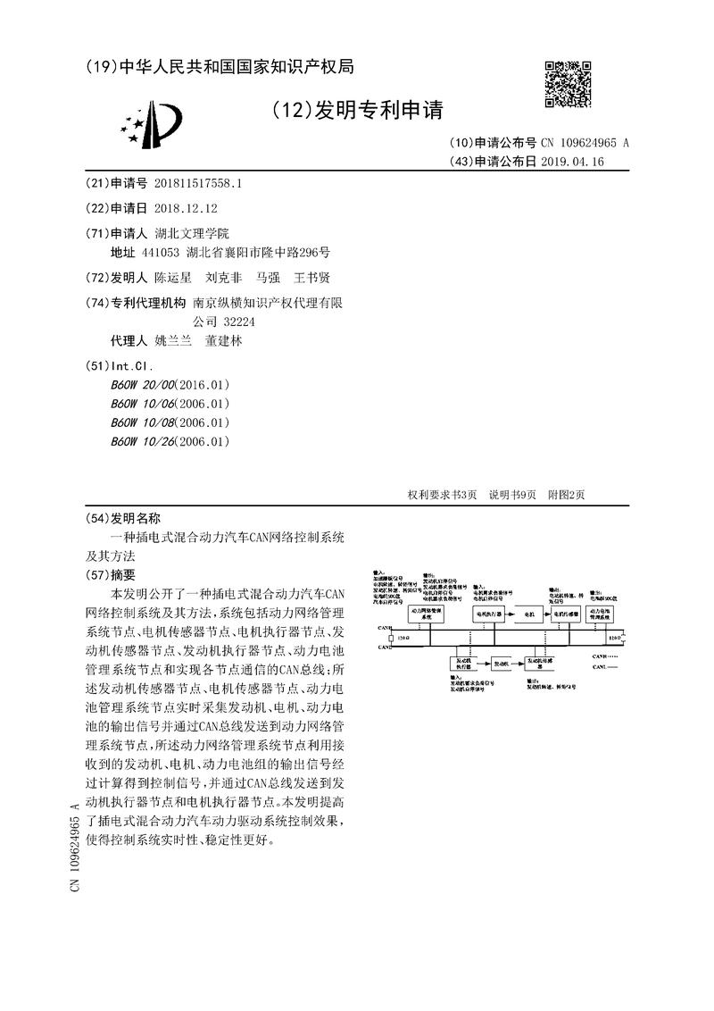 一种插电式混合动力汽车CAN网络控制系统及其方法