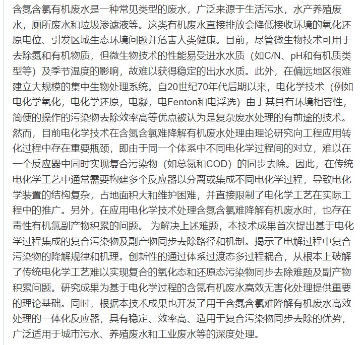一种含氮含氯难降解有机废水的电化学处理方法和反应器