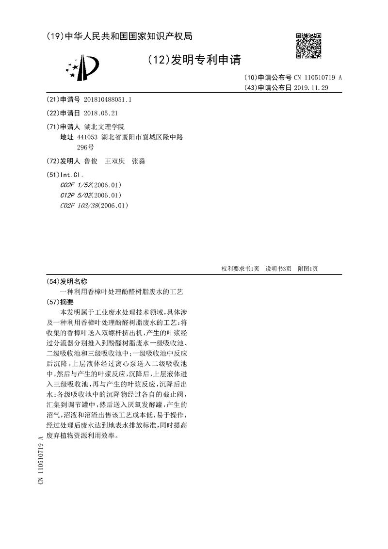 一种利用香樟叶处理酚醛树脂废水的工艺