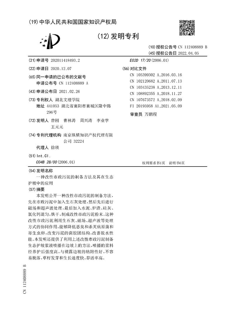 一种改性市政污泥的制备方法及其在生态护坡中的应用