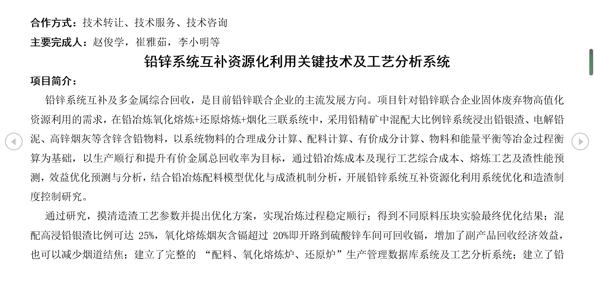 铅锌系统互补资源化利用关键技术及工艺分析系统