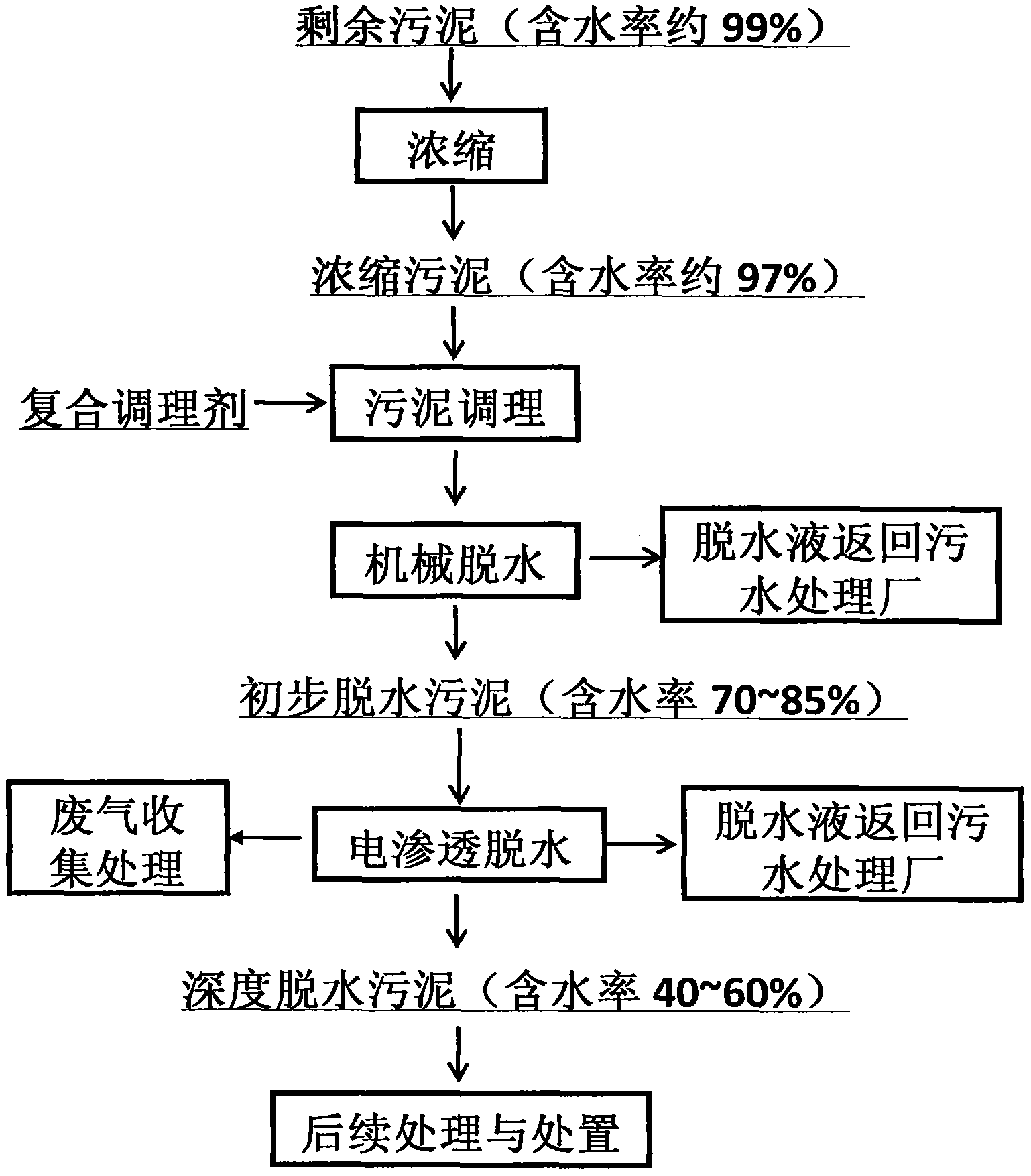 一种市政污泥化学调理强化初步机械脱水联合电渗透两级深度脱水方法