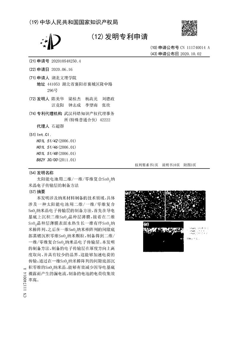 太阳能电池用二维/一维/零维复合SnO2纳米晶电子传输层的制备方法