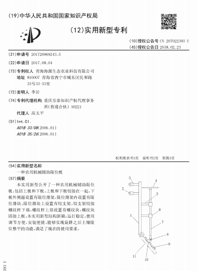一种农用机械辅助限位板