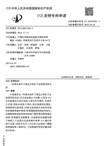 一种离体条件下柴达木枸杞不定苗诱导的方法
