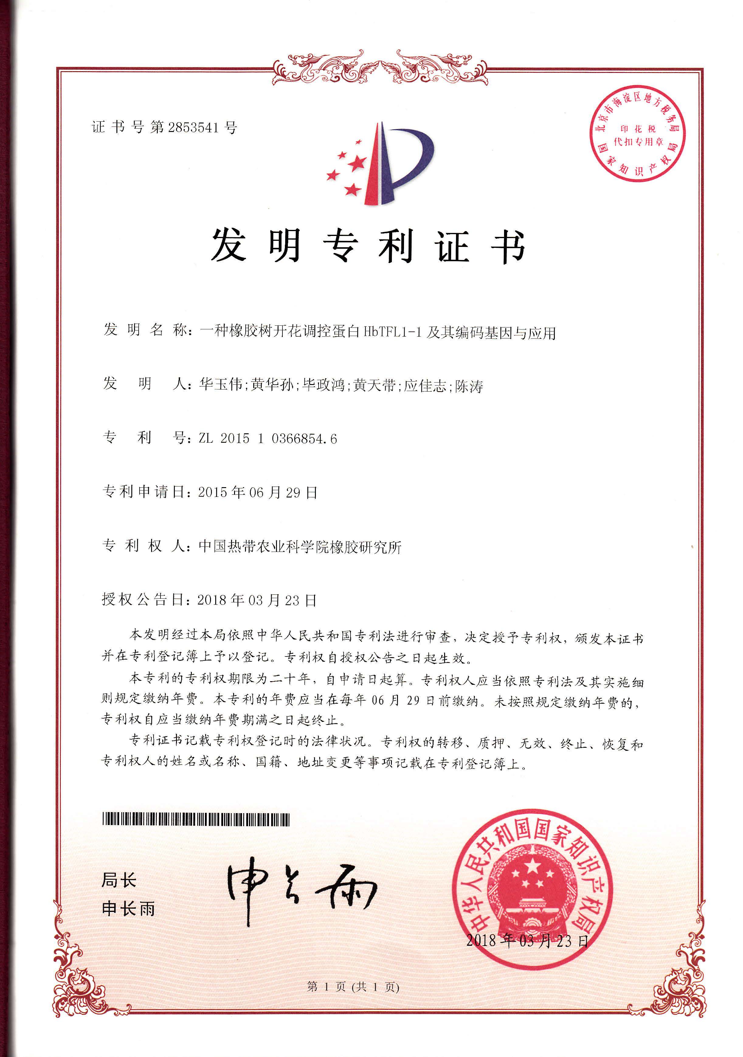一种橡胶树开花调控蛋白HbTFL1-1及其编码基因与应用