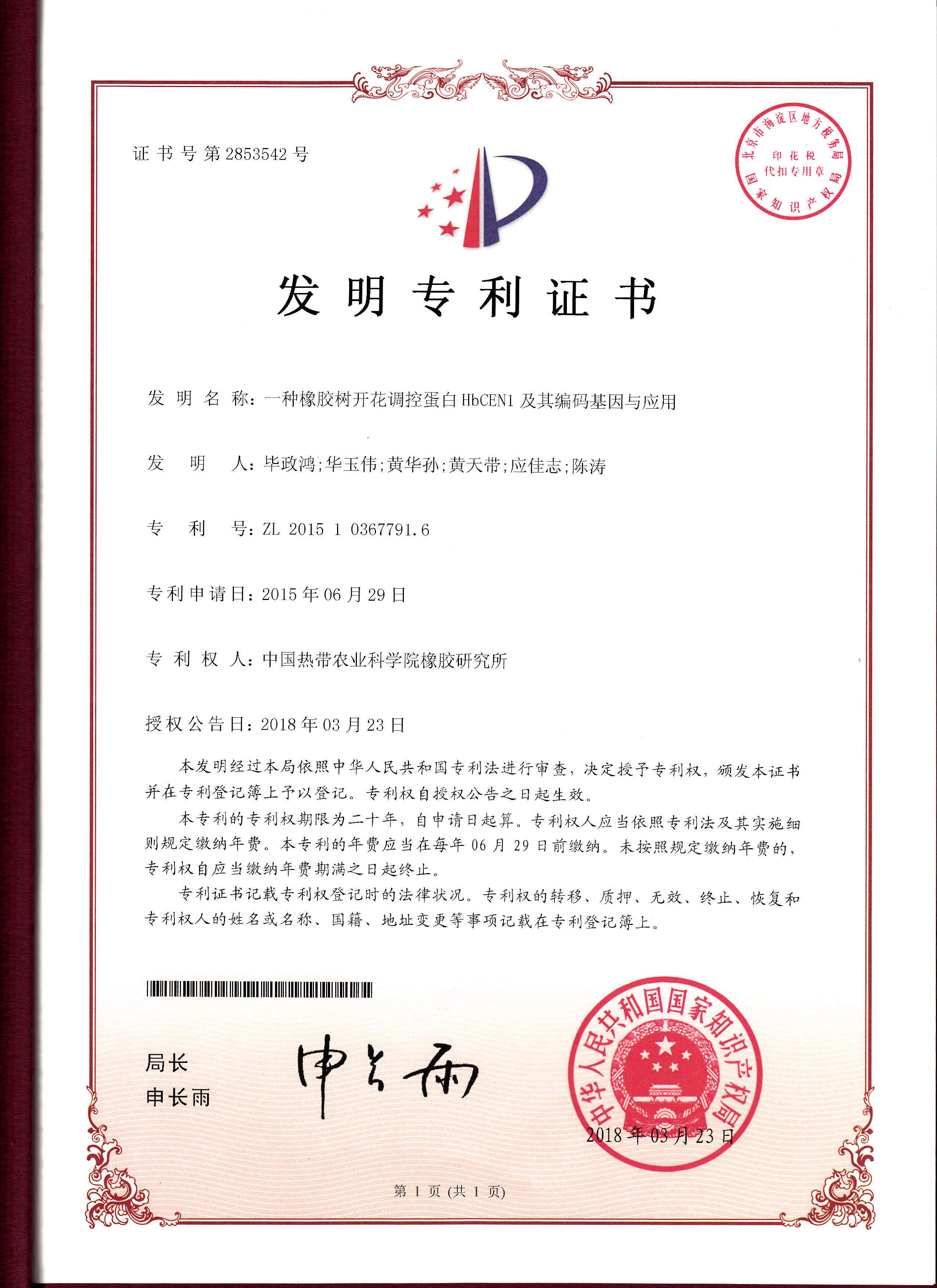 一种橡胶树开花调控蛋白HbCEN1及其编码基因与应用