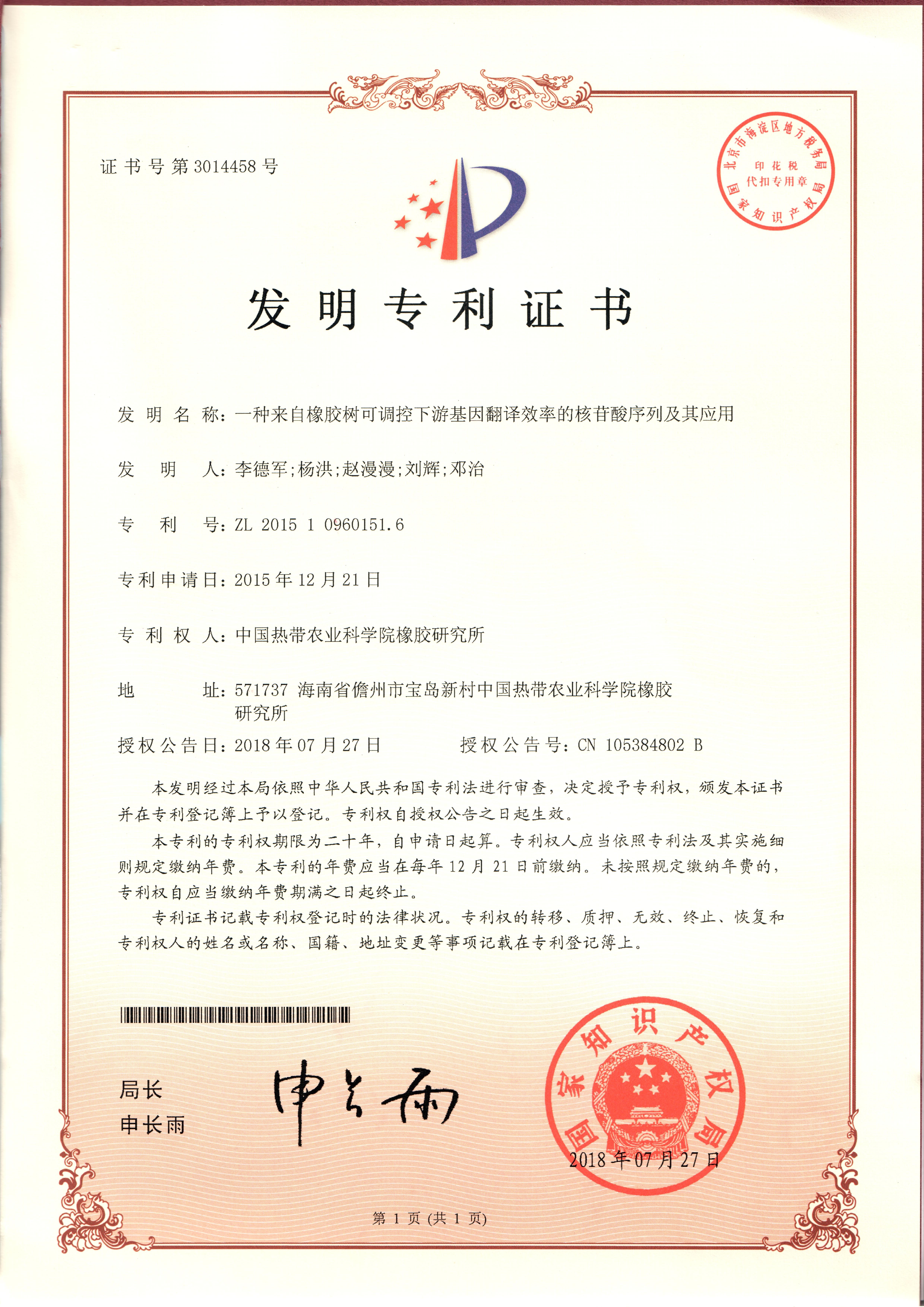 一种来自橡胶树可调控下游基因翻译效率的核苷酸序列及其应用