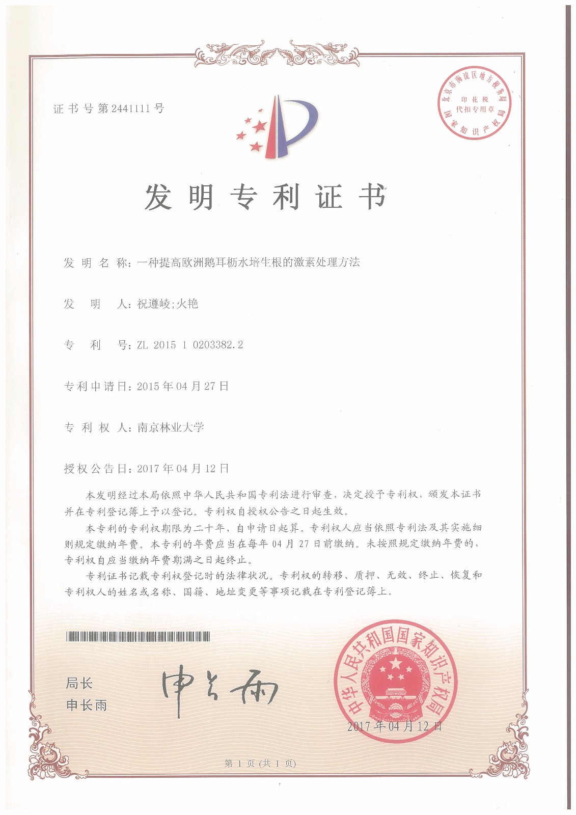 欧洲彩色树种引进及香水莲花应用研究与产业化