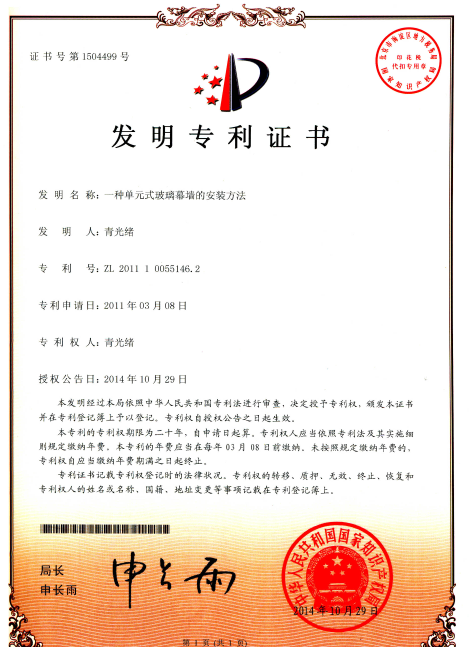 一种单元式玻璃幕墙的安装方法