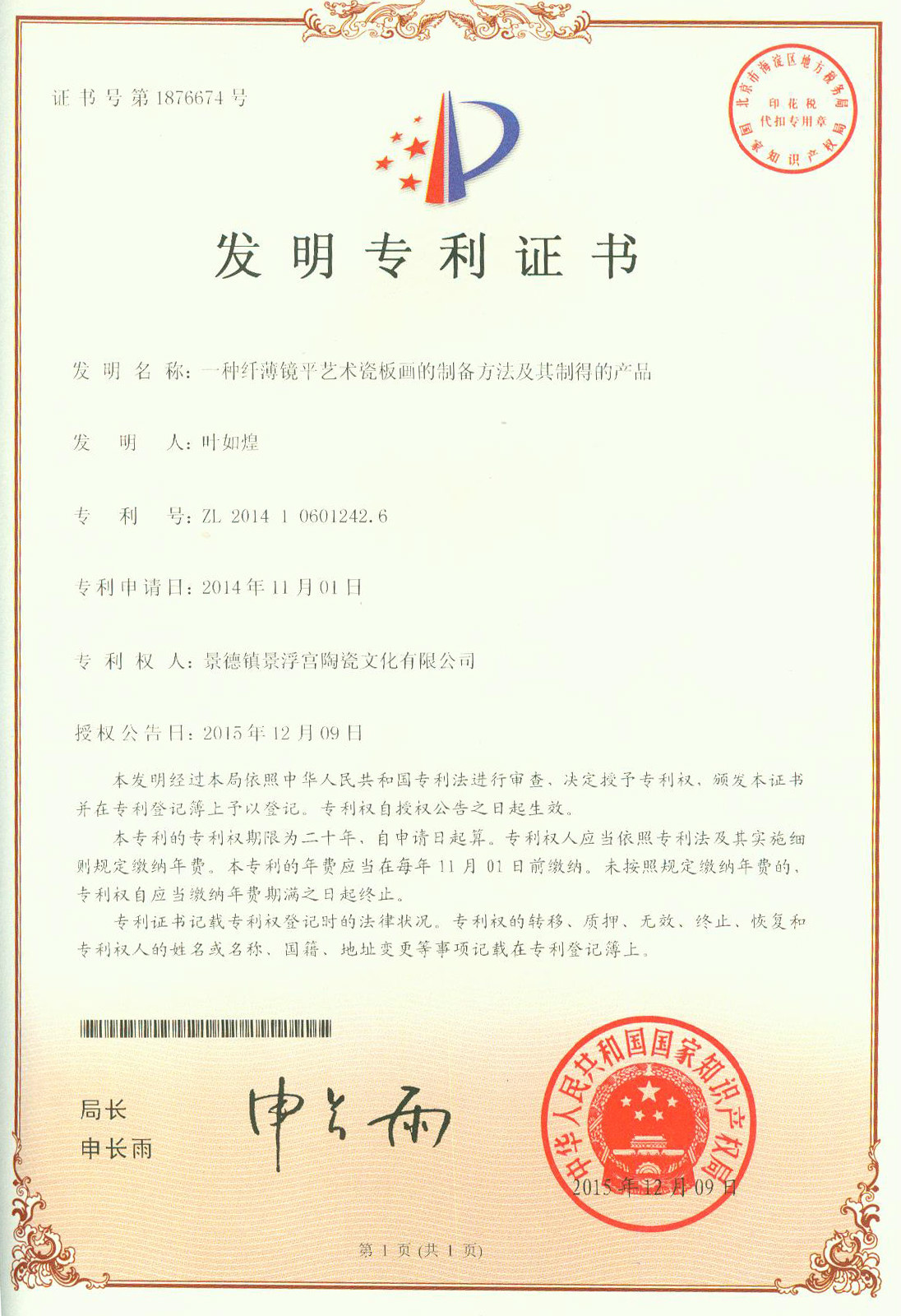 纤薄镜平艺术瓷板画的制备方法