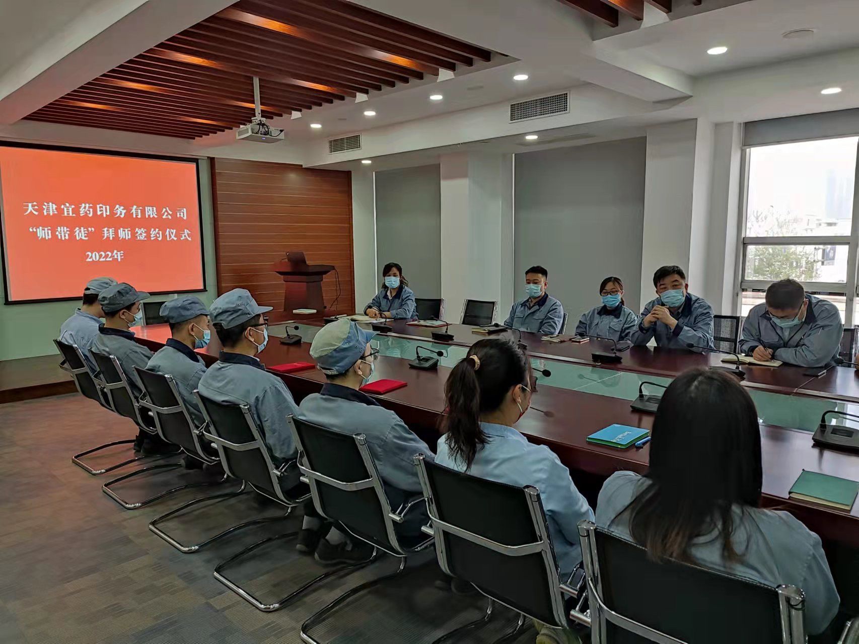 天津宜药印务有限组织召开2021年“导师带徒”总结会暨2022年拜师签约仪式