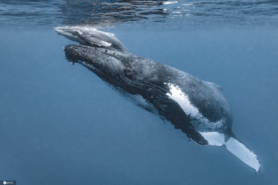 温馨感人!国外座头鲸宝宝与母亲紧贴亲密互动