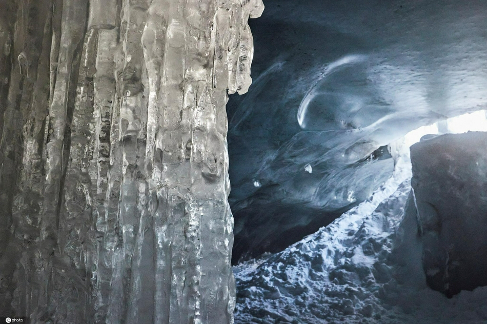瑞士天然冰洞向游客开放 冰蓝色梦幻迷人宛如童话世界