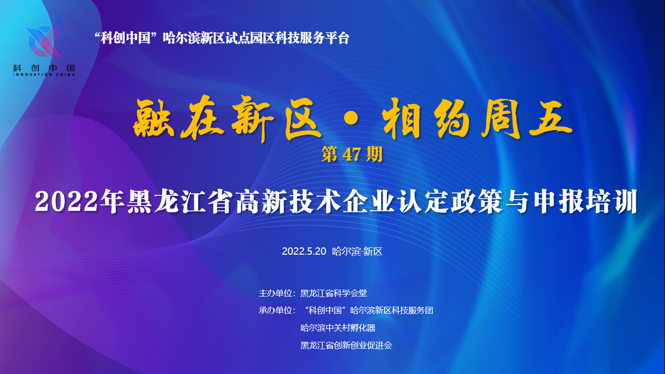 科创中国融在新区·相约周五第47期 2022年黑龙江省高新技术企业认定政策与申报