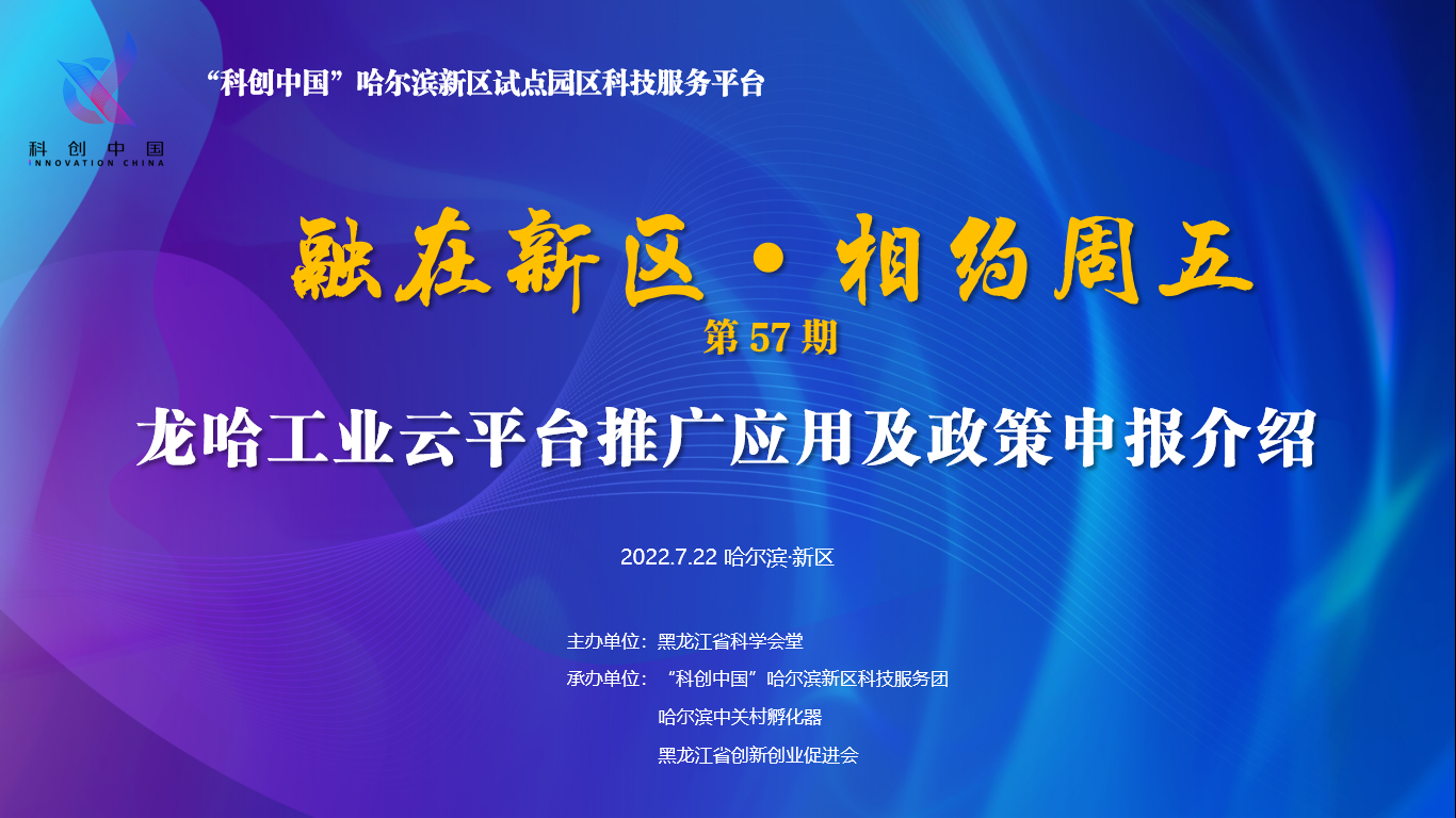 科创中国“融在新区·相约周五” 第57期龙哈工业云平台推广应用及政策申报介绍