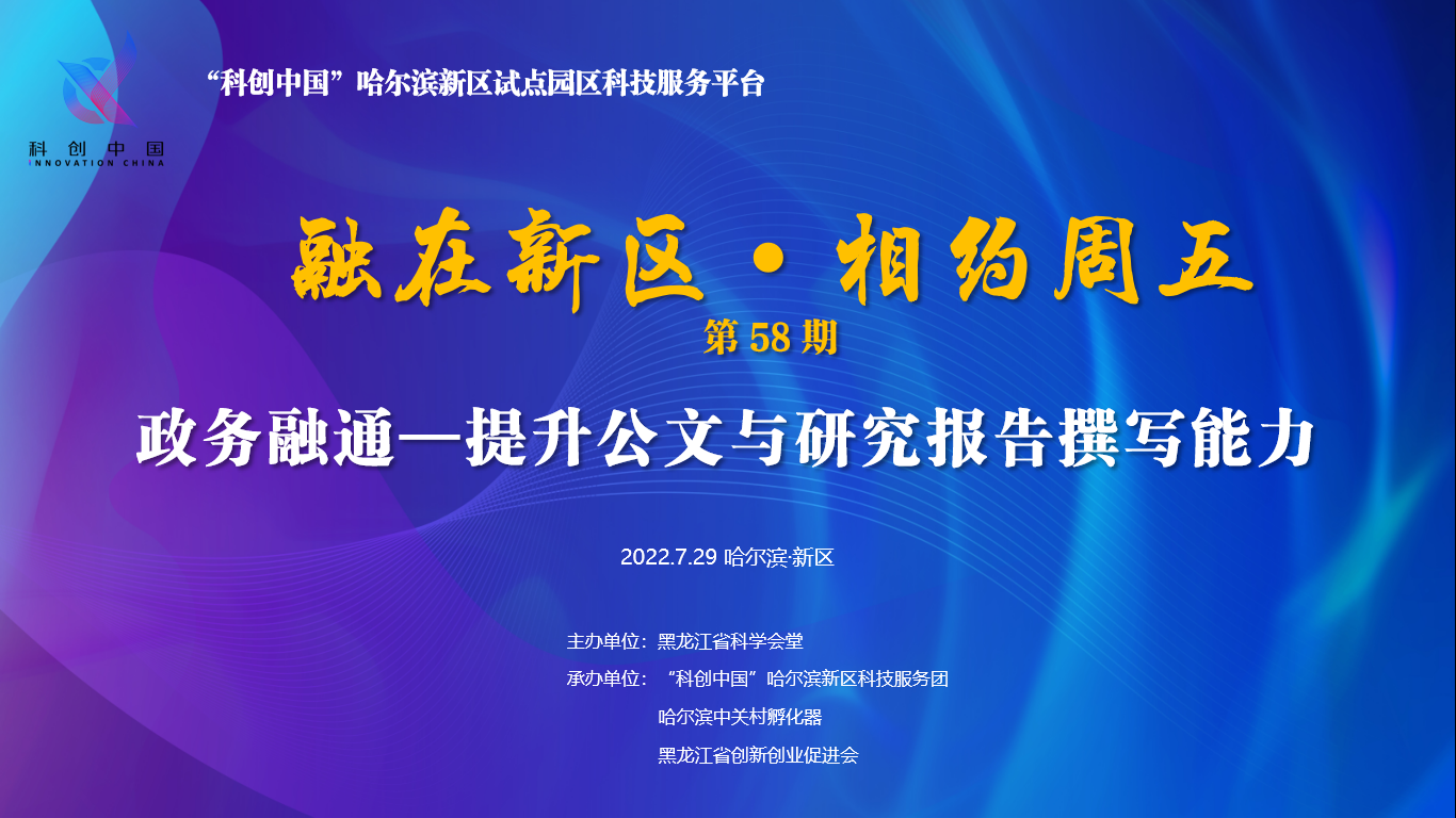 科创中国“融在新区·相约周五”第58期政务融通——提升公文与研究报告撰写能力