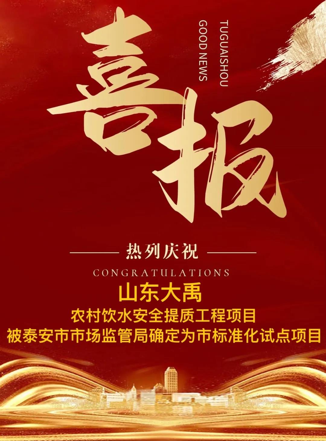 山东大禹水处理公司的“农村饮水安全提质工程项目”被泰安市市场监管局确定为泰安市标