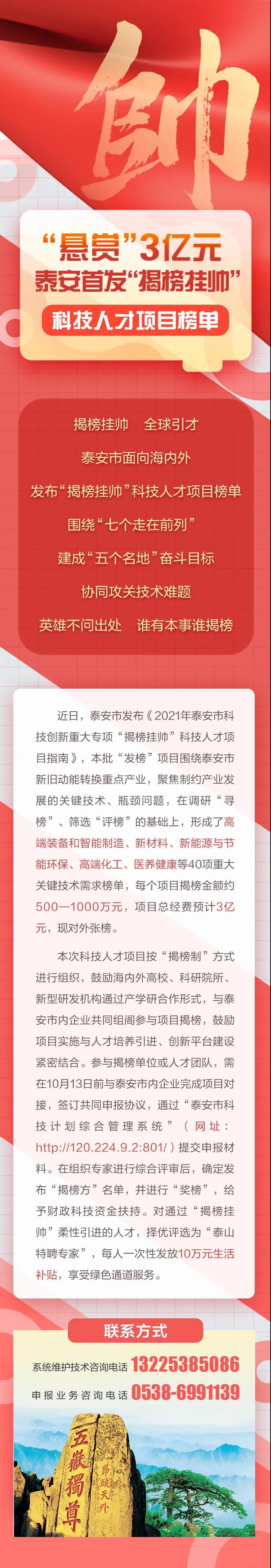 “悬赏”3亿元 泰安首发“揭榜挂帅”科技人才项目榜单