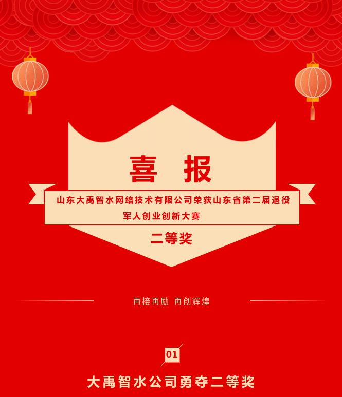 山东大禹智水网络技术有限公司荣获山东省第二届退役军人创业创新大赛二等奖!