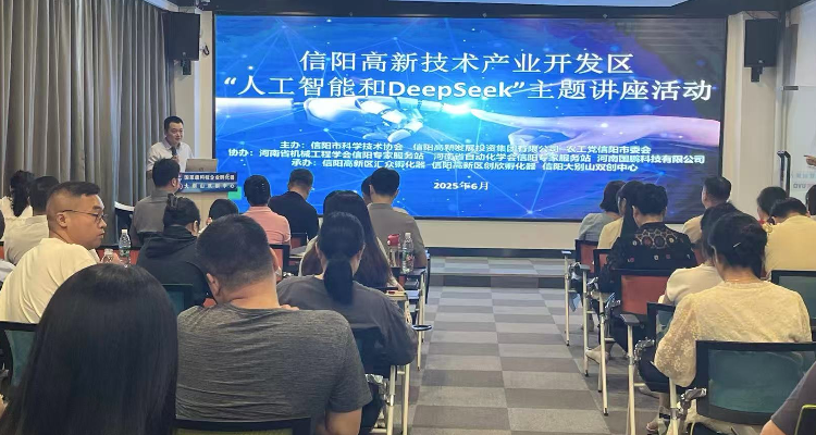 6月12日,信阳市科学技术协会、信阳高新发展投资集团有限公司、农工党信阳市委会联合主办的“人工智能和DeepSeek”主题讲座在大别山双创中心火热开讲。信阳高新区各单位及辖区企业代表齐聚一堂,共同沉浸