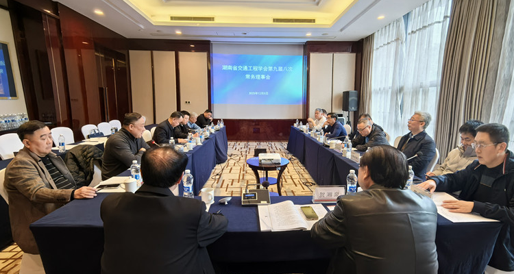 2025年12月5日上午,湖南省交通工程学会在长沙召开第九届八次常务理事会议。学会理事长郭紫星、副理事长兼秘书长贺湘泉、部分副理事长和常务理事共计18人参加了会议,党支部书记黄松山和监事长何贤锋列席会