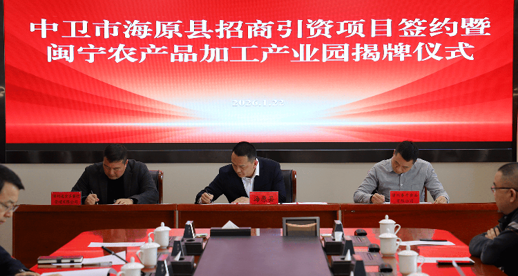 1月22日,海原县招商引资项目签约暨闽宁农产品加工产业园揭牌仪式举行。活动深入贯彻落实习近平总书记关于乡村振兴的重要论述、关于深化东西部协作的重要指示精神,进一步深化漳州、中卫两地协作,双向奔赴、互利