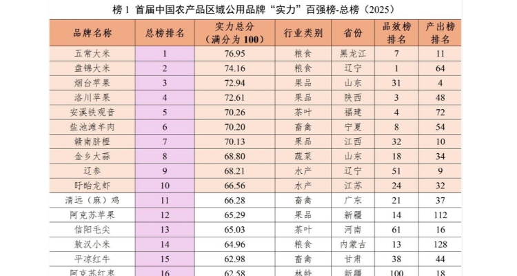 近日,江南大学国家安全与绿色发展研究院联合中国一乡一品品牌战略研究院、中国一乡一品产业研究院共同发布《首届中国农产品区域公用品牌“实力”排行榜(2025)》。其中,中宁枸杞位列首届中国农产品区域公用品