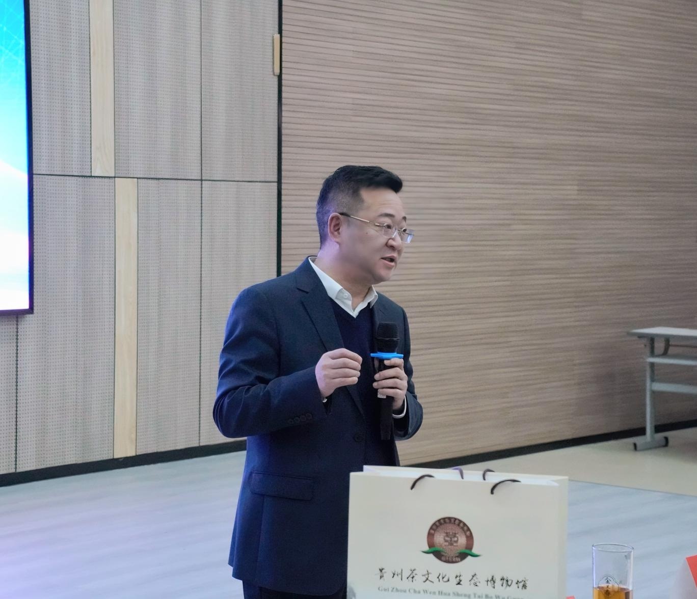 金循主持座谈会2025年2月28日上午,贵州省茶叶研究所·贵州省湄潭茶场·贵州茶文化生态博物馆 85 周年座谈会在贵州大学茶学院顺利召开,来自省属科研院所、9市(州)行业主管部门、茶企、媒体等单位约100人参加了本次座谈会。会议由贵州湄潭兰馨茶业有限公司董事长、贵州省茶叶学会副理事长金循主持。