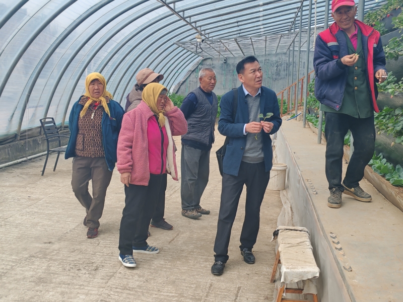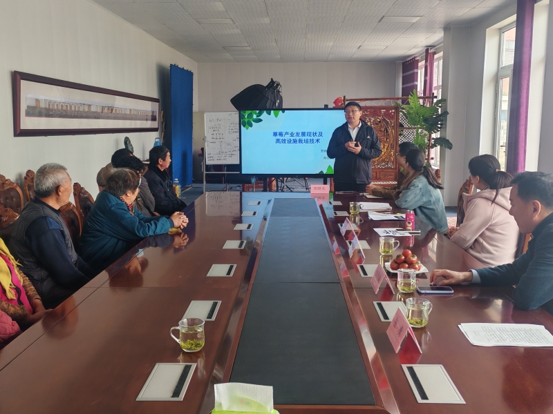 3月27日,活动走进城阳,邀请青岛农业大学园艺学院副教授,山东省科技特派员、山东省乡村振兴专家服务团专家刘更森和山东农学会草莓专业委员会副会长、山东省泰山学者青年专家郑晓东,赴城阳区曹村草莓合作社开展送科技下乡志愿服务活动。专家与合作社社员、种植户代表展开座谈,围绕草莓品种选育、水肥管理、病虫害防治等关键技术展开深入交流。针对农户提出的连作障碍、畸形果率高等痛点问题,结合国内外先进案例,提出土壤改良方案与绿色防控技术。会后,专家团队深入草莓大棚,实地查看苗情长势,对光照调控、疏花疏果等环节进行“一对一”指导。